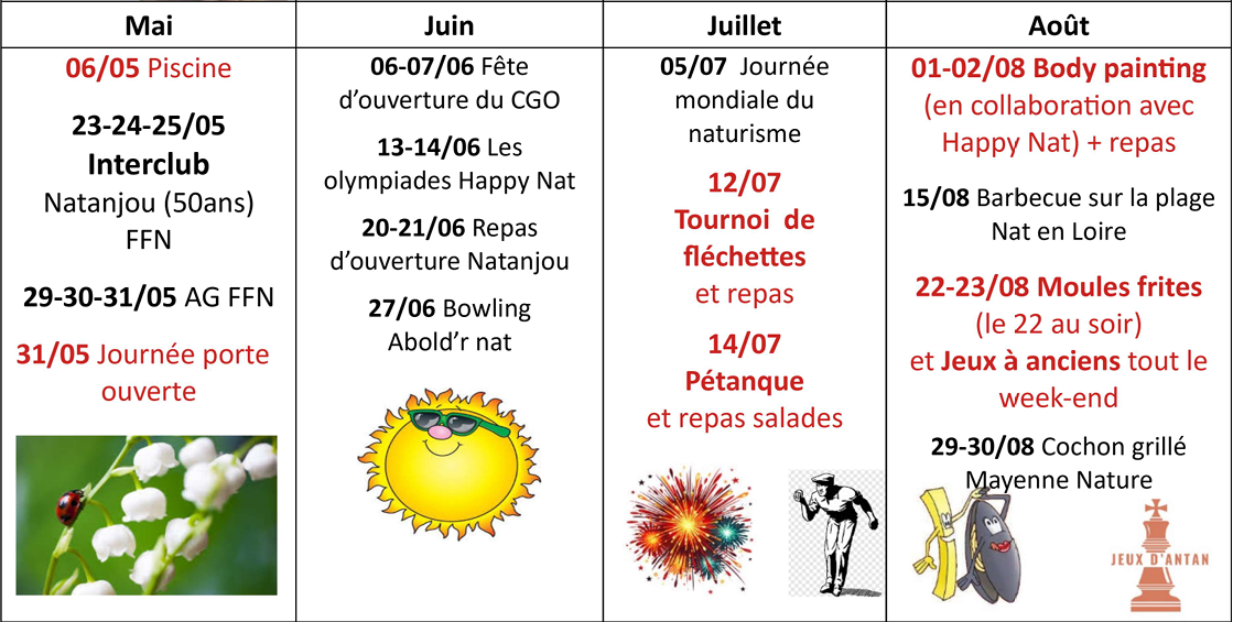 En cas de modification de date ou de mise en place de nouvelles animations locales, régionales ou nationales, vous serez informés par mail et sur le site des N.S.